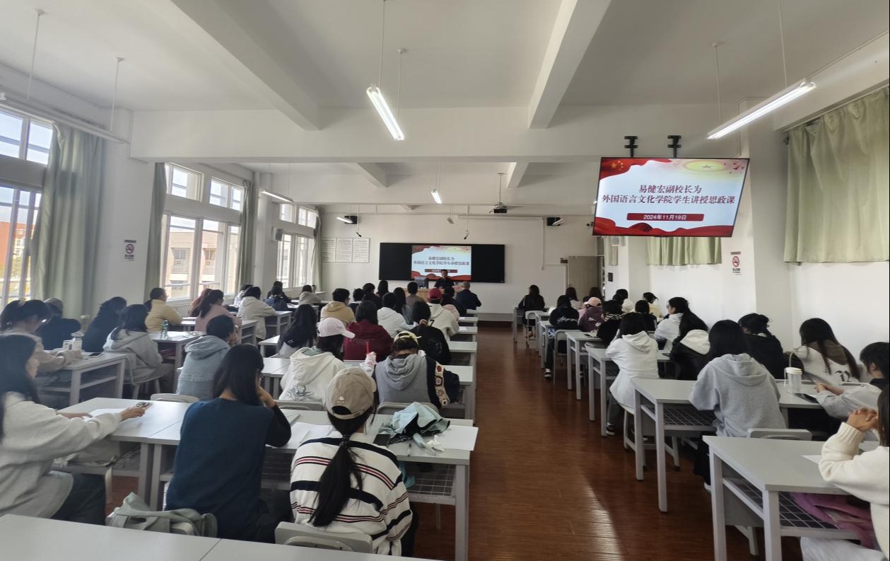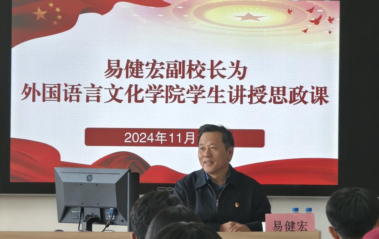 11月19日,校党常委、副校长易健宏在博文楼403教室,为外国语言文化学院英语专业本科生讲授思政课。