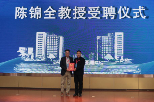 陈锦全教授受聘为太阳成集团tyc151cc特聘教授,刘殿文为其颁发聘书。