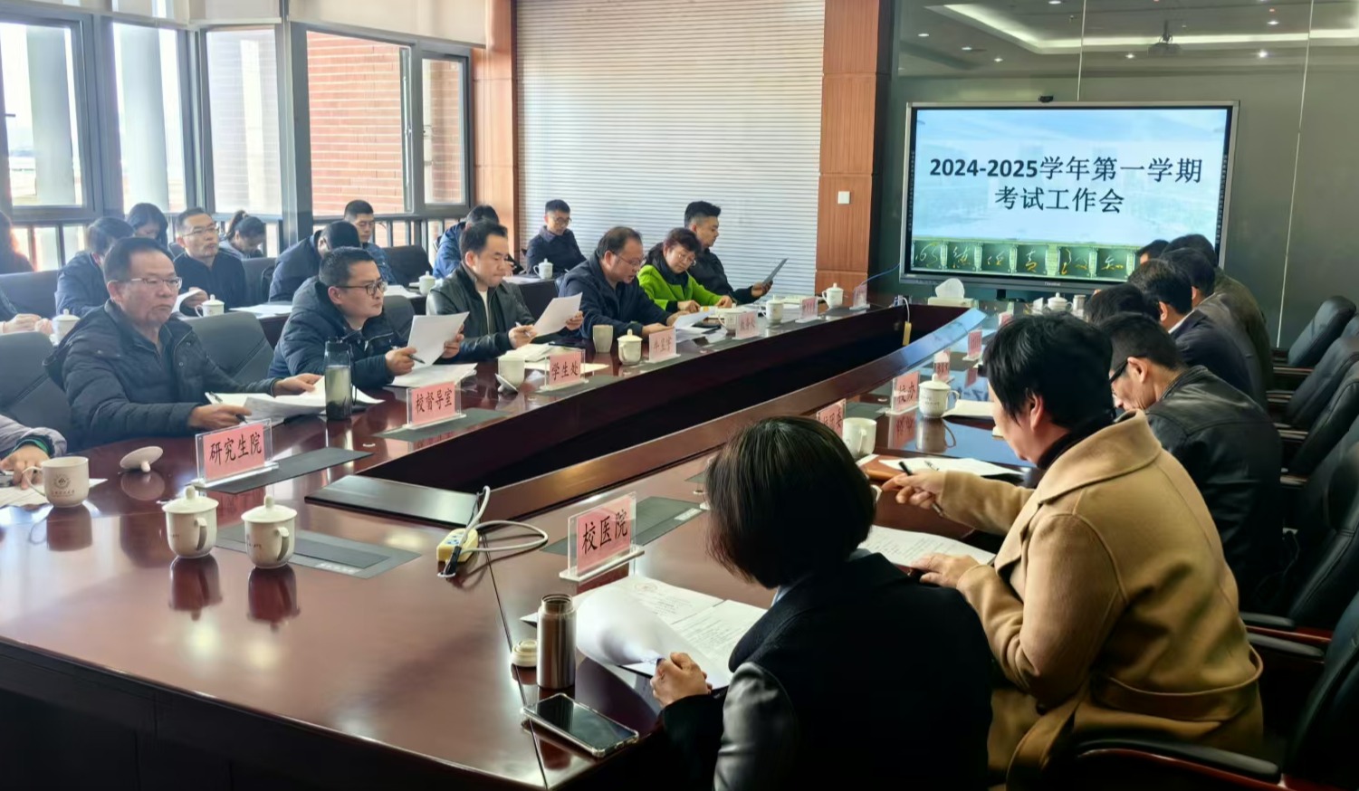 会上,教务处就全国大学英语四六级笔试和期末考试任务进行分解,确保考试各环节工作落细落实,组织严密,措施得当。学生处对诚信宣传、警示教育工作进行安排。