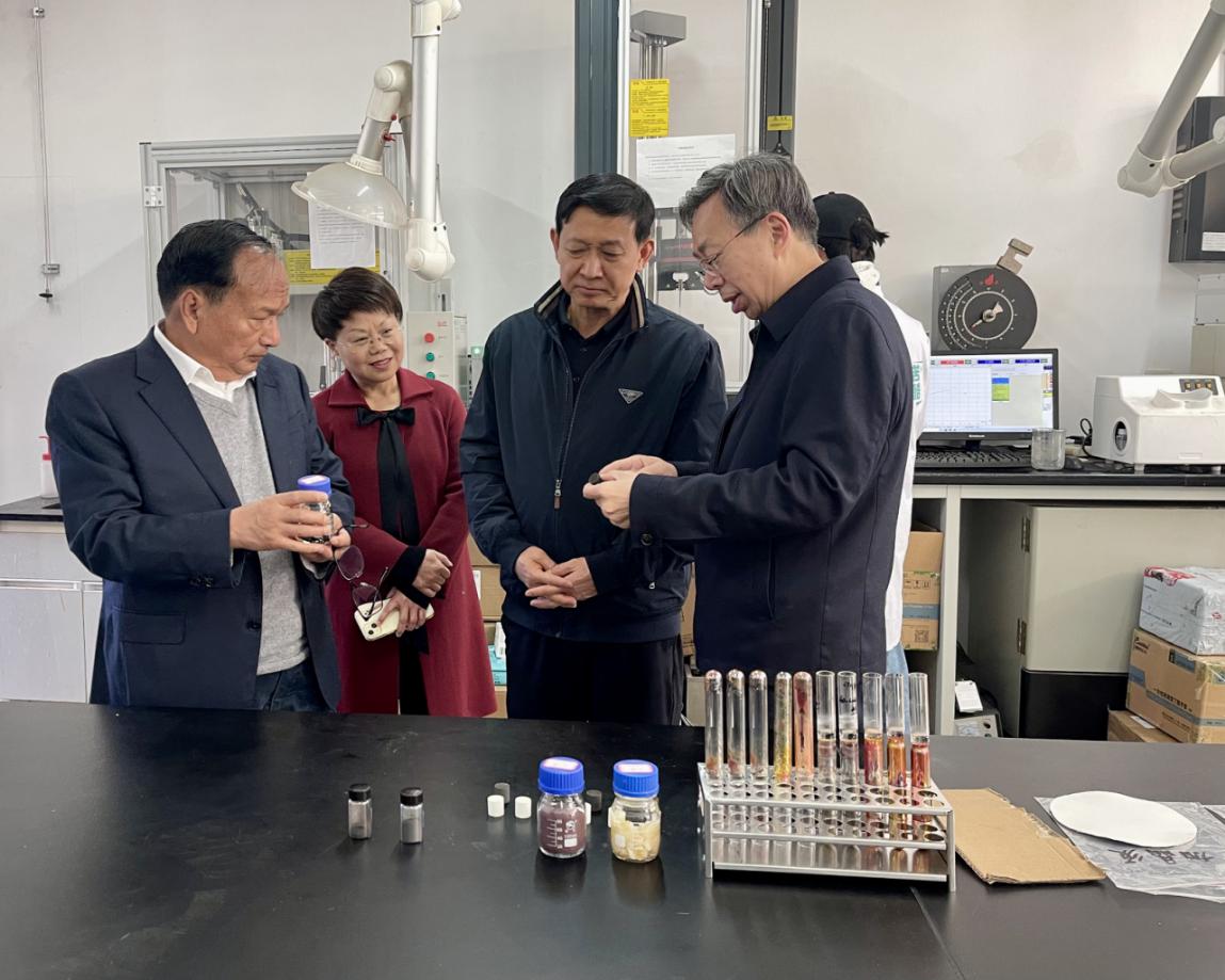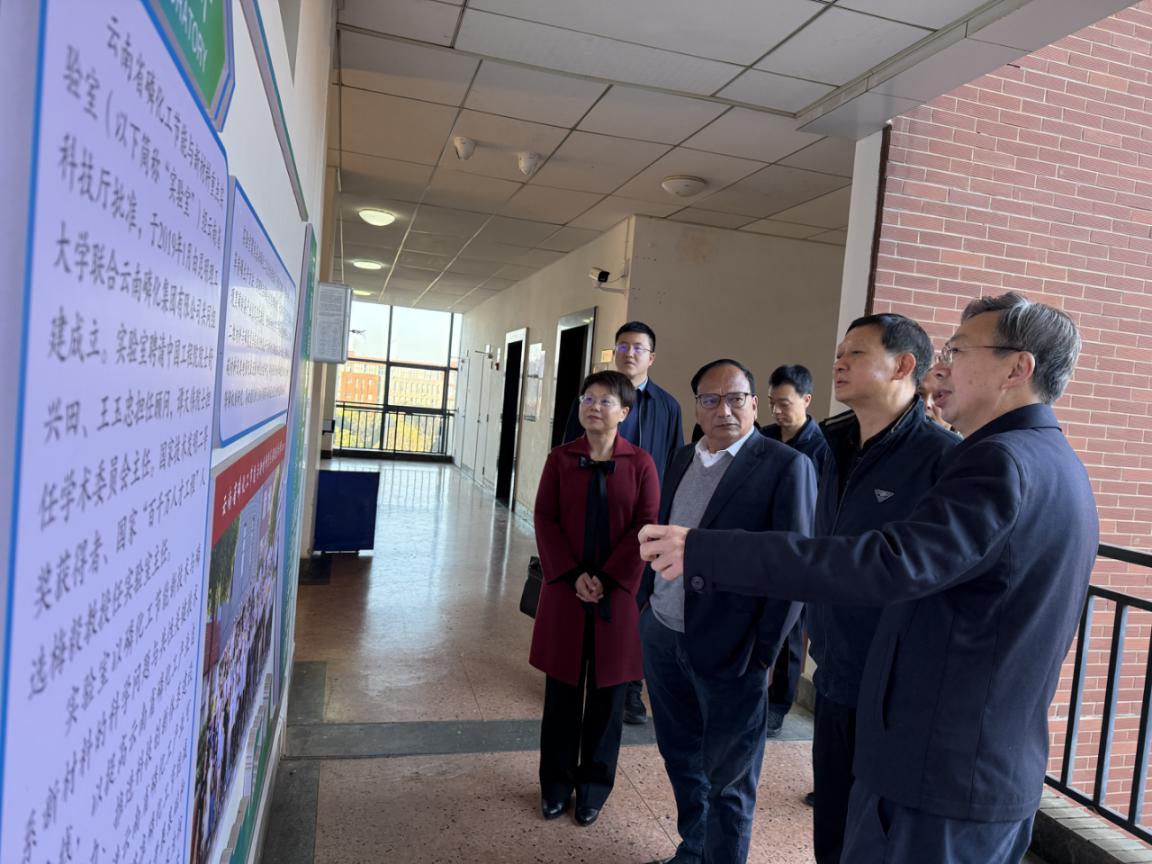 王以志一行参观了云南省磷化工节能与新材料重点实验室,并与梅毅教授交谈,了解了专家的工作、科研情况,听取相关意见和建议。同时,对梅毅教授多年围绕基础磷化工的流程再造、节能减排、循环经济、产品升级,磷系阻燃材料、储能材料开展研究与工程开发所做出的贡献表示感谢,并致以问候和祝福。