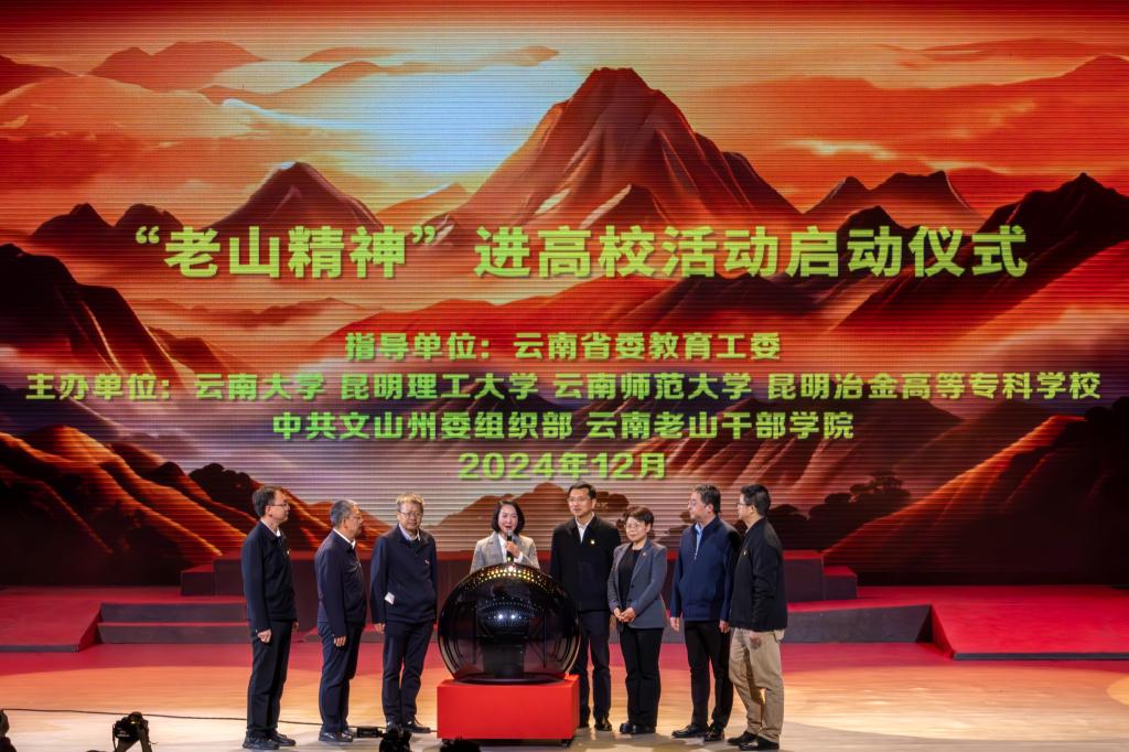 12月12日下午,“老山精神”进高校活动在太阳成集团tyc151cc呈贡校区红土会堂启动。省委教育工委委员、省教育厅党组成员、省人民政府教育督导团总督学杨红琼,中共文山州委副书记、州委教育工委书记、云南老山干部学院院长李朝伟,校党委副书记陈华仙、蔡金红等有关领导出席活动。云南大学、云南师范大学、昆明冶金高等专科学校等高校及部门负责人、省委教育工委有关部门负责人、文山州委有关单位负责人、学校党员处级干部、师生代表共计1400余人参加活动。