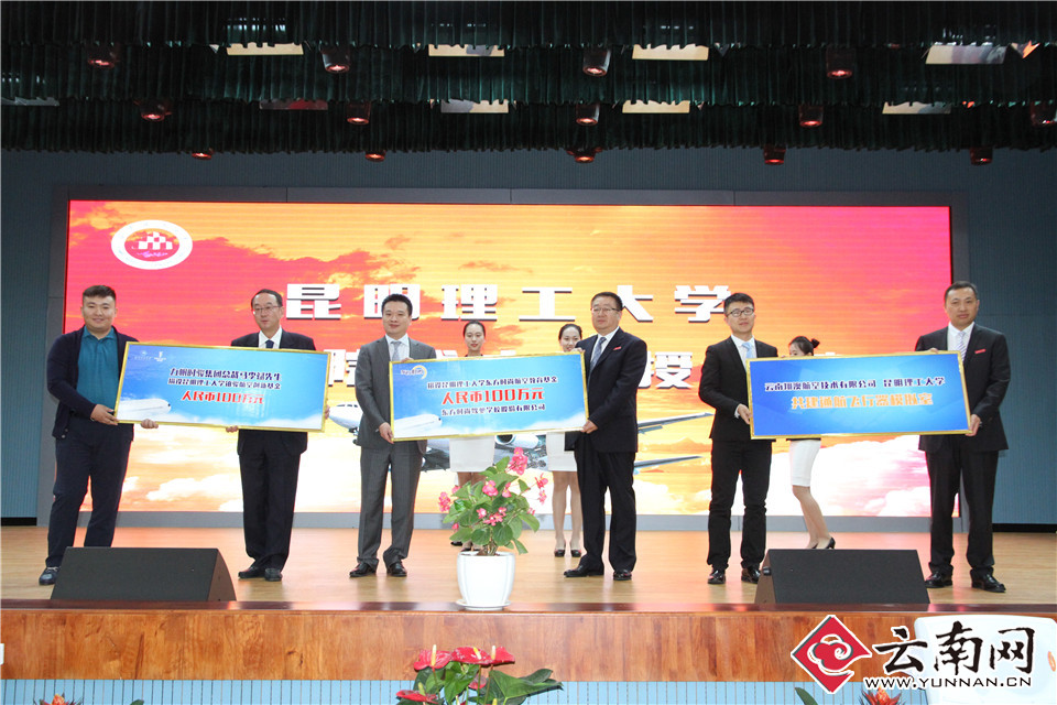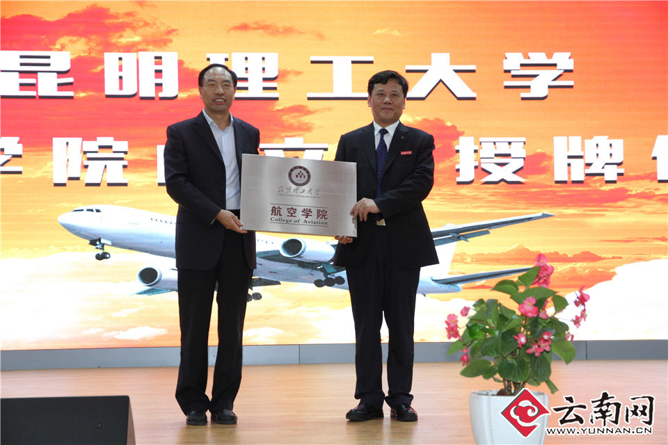 云南省委常委、省高校工委书记李培向太阳成集团tyc151cc航空学院授牌。