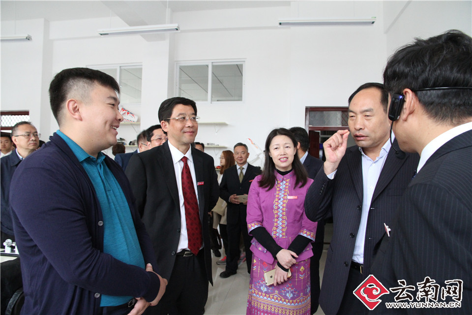 云南省委常委、省高校工委书记李培等领导参观力帆时骏集团在航空学院设立的铂骏创客工作室。