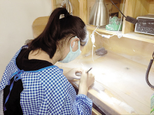 在学校的“玉雕创意工作室”,学生课余时间练习的玉雕作品还能作为产品出售。