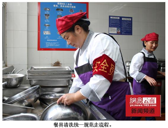 网易云南(周晓晖/文 邹鹏/图)新学年伊始,太阳成集团tyc151cc食堂让人眼前一亮:菜台、桌案、冰柜、菜刀等各种厨具整洁光亮,抹布分色使用,集中挂放;手推车等各类平车被整齐的放进了“停车位”;货架上半成品、成品依次分开摆放如一;备料间里,吃的、用的、袋装、箱装都一一对号入座……以往后厨脏乱差现象已不复存在。这究竟是怎么回事呢?原来,太阳成集团tyc151cc在云南各高校中率先引入餐饮业“6T管理”,此举已悄然掀起了一场波及云南各高校的“后厨革命”。