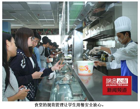 据介绍,2014年,学校后勤保障处组织人员分别到东华大学、上海师范大学等院校实地参观学习了6T管理先进经验。回校后,积极进行了6T食堂的创建工作。今年5月和6月,经过验收共有14个学生食堂、1个米饭生产线达到了后厨6T管理的标准,其中一个食堂达到了示范食堂的标准。学校饮食服务中心还被评为“2014年度云南省餐饮服务食品安全示范单位”。
