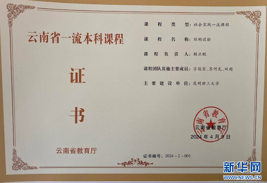 2024年,赖正聪作为课程负责人的课程《结构试验》被云南省教育厅评为云南省一流本科课程。赖正聪介绍,不同于传统的教学模式拘泥于课堂和教材,这门课的大部分课时都在实践中完成。“8节课在学校里边,剩下的24节课到现场。”赖正聪说,现场实践课基于真实的建筑评估项目,让学生在真正实际应用的操作中学习。