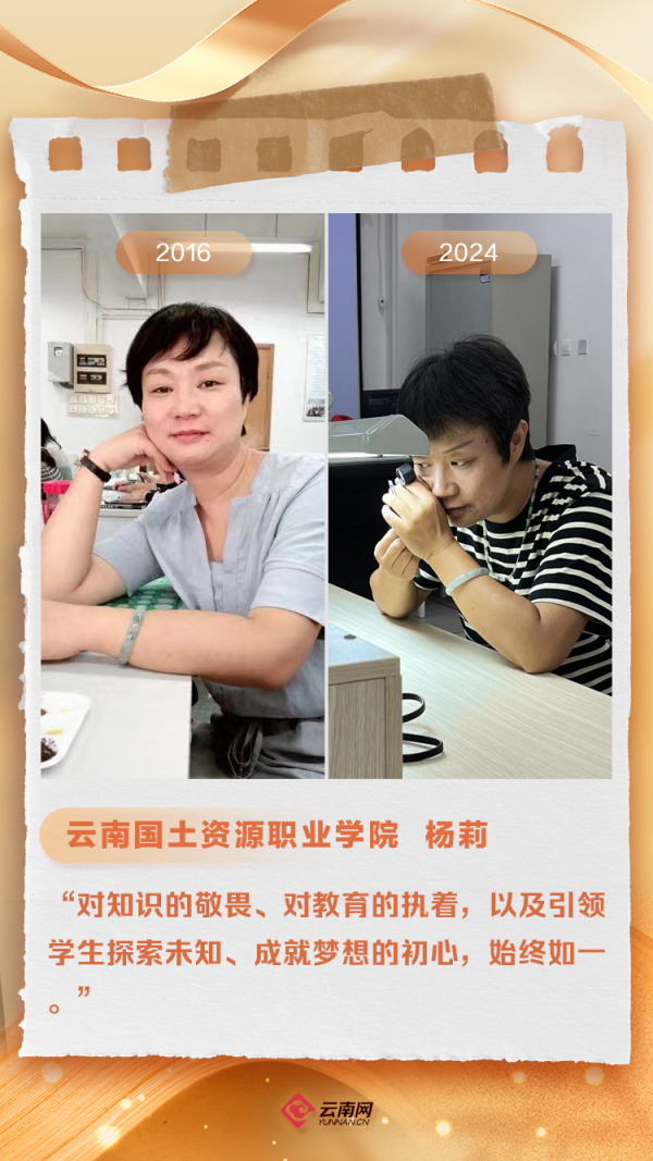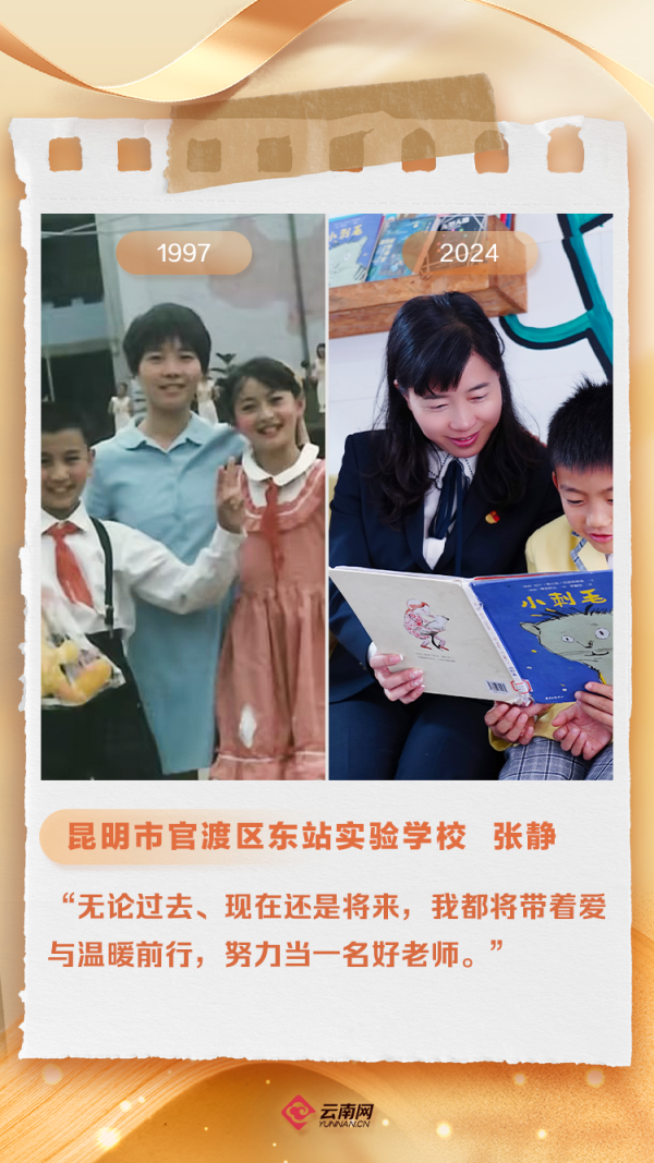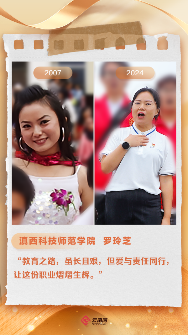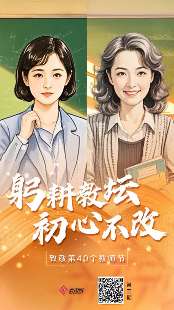 时光荏苒,容颜虽随岁月更迭,而教育之心,始终璀璨如初。昔日初踏杏坛,他们以青涩之姿,怀揣满腔热忱;今朝追光逐梦,历经风雨洗礼,他们又以何种风采屹立?值此第40个教师节之际,云南网匠心策划《教师节时光印记特辑》,征集了40位云岭教师的从教岁月对比照,跨越时光的长廊,共鉴他们与教育不解之缘的“蜕变与坚守”。让我们携手步入这段光影交织的旅程,细品岁月悠悠中那份愈发醇厚的教育情怀。今天推出第三期。