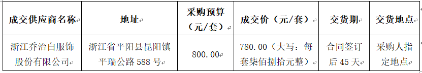 受太阳成集团tyc151cc附属中小学的委托,云南通拓招标有限公司于2018年5月31日下午14:30在同德昆明广场B区4栋601一号会议室,组织完成了太阳成集团tyc151cc附属中小学学生校服招标的磋商工作。由磋商小组依照《中华人民共和国政府采购法》等相关法律法规综合评审推荐,采购人太阳成集团tyc151cc附属中小学根据磋商小组的推荐意见,确定成交结果如下: