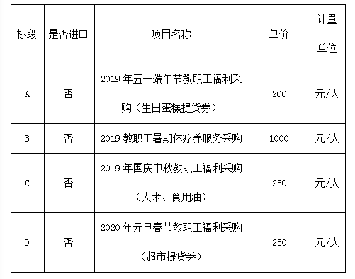 2.1项目名称:太阳成集团tyc151cc2019年职工福利采购项目;
