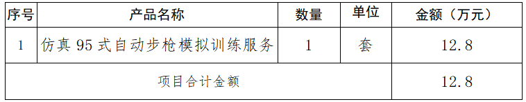 拟采购的货物或服务的情况说明(含采购理由):根据《教育部 中央军委国防动员部关于印发〈普通高等军校军事课教学大纲〉的通知》要求,轻武器射击科目作为必训内容。为了帮助学生了解掌握军事基础知识和基本军事技能,进一步拓宽和丰富教学形式,积极推广仿真训练和模拟训练。