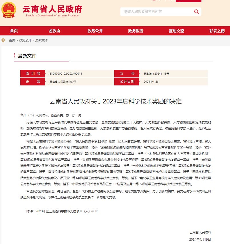 云南省人民政府发布