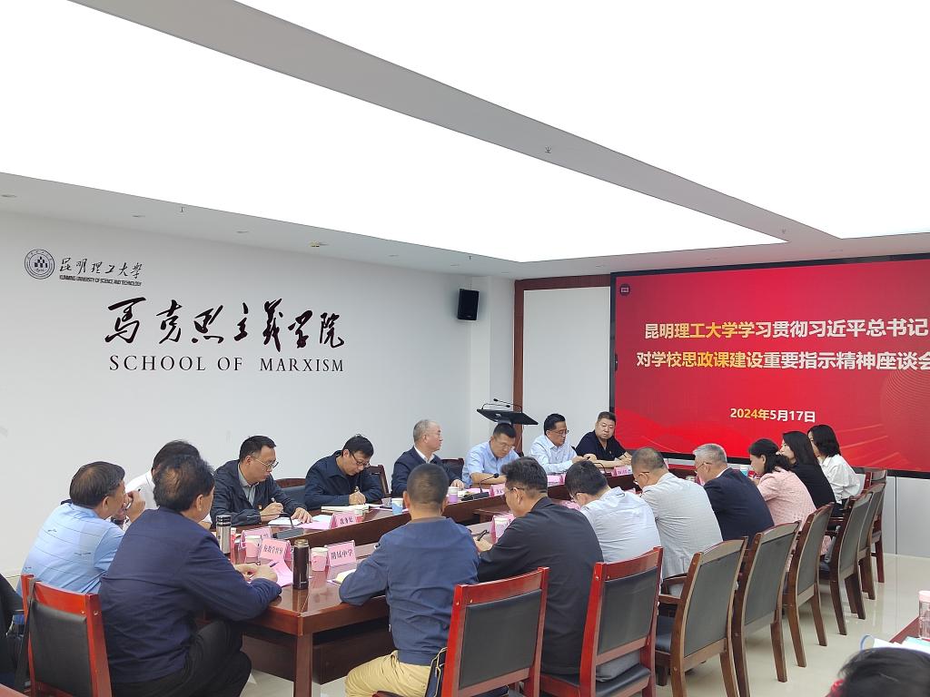 学校党委办公室、宣传部、教师工作部、教务处、学生处、研究生院、研工部、校团委、人文社科研究院、基础医学院、昆工附中、昆工附小负责人,马院班子成员、师生代表参加会议。