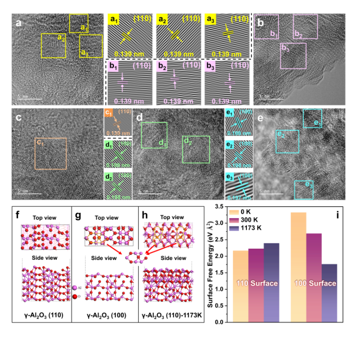 本研究亮点主要包括以下三点:(1)本工作发现了不同温度下,γ-Al2O3不同晶面的表面能存在显著差异,高温焙烧可以诱导暴露晶面由(110)转变为(100)晶面;(2)γ-Al2O3表面羟基类型存在晶面依赖性,γ-Al2O3(100)晶面上存在更多的端羟基,丰富的端羟基使得Ag物种呈现单原子分散,并在C3H6-SCR和臭氧分解反应中表现出优异的活性和热稳定性;(3)晶面转变诱导生成的端羟基可实现Ag单原子的原位捕捉锚定,从而开发出稳定高效的单原子Ag基催化剂。