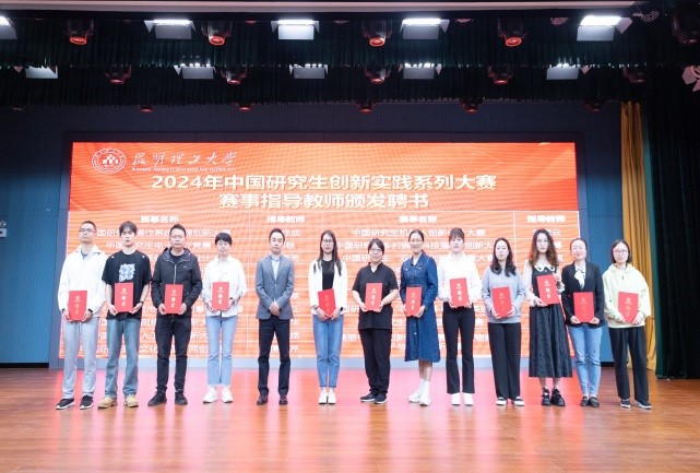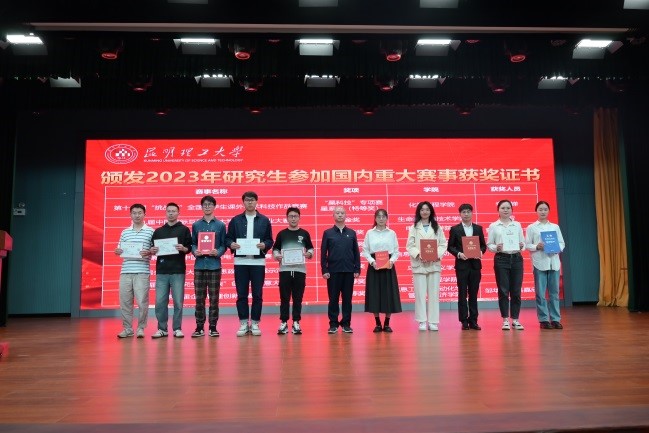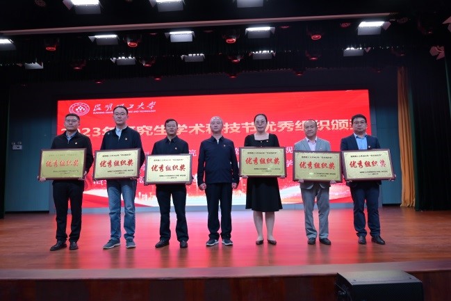 会上,与会领导为2023年研究生学术科技节期间涌现出师生先进典型代表、优秀组织单位代表颁奖。