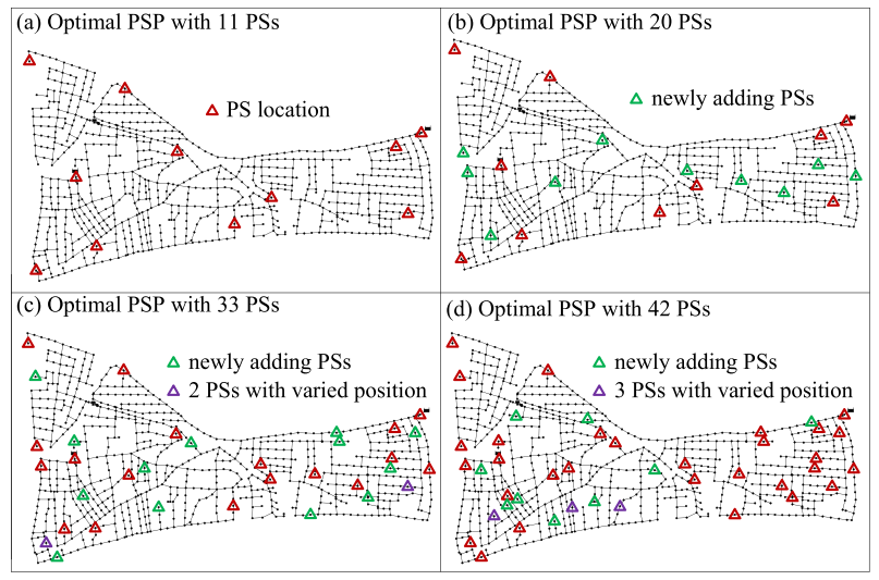 将优化布局与当前商业软件得到布局进行比较,结果表明:所得到的布局不仅能够兼顾不同程度爆管的监测,还具有较好的可扩展性,展现出更好的工程应用前景。