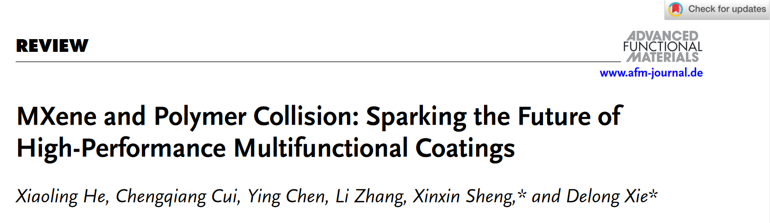 近日,化学工程学院磷化工团队谢德龙教授联合广东工业大学盛鑫鑫副教授团队,在Advanced Functional Materials期刊上发表了题为MXene and Polymer Collision: Sparking the Future of High-Performance Multifunctional Coatings的综述文章。