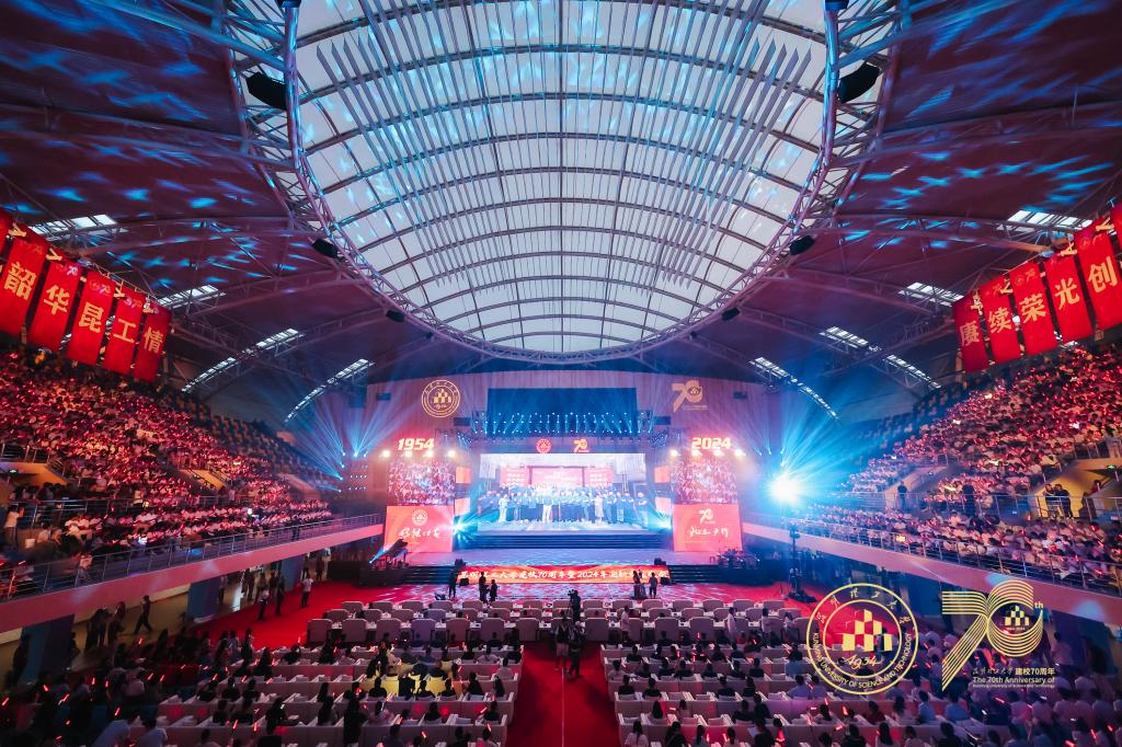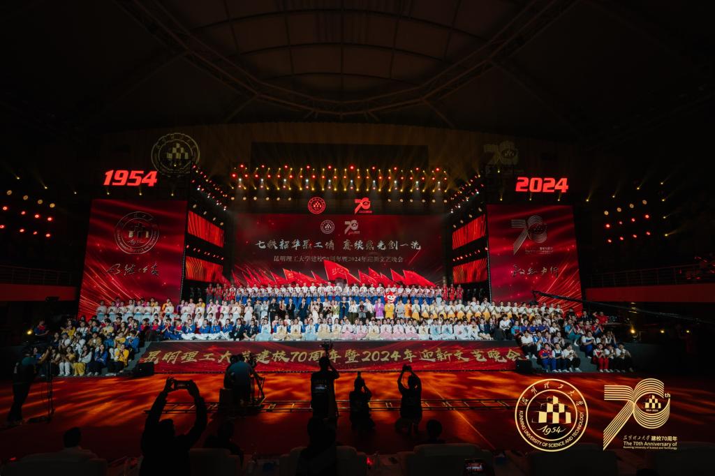 9月1日晚,“七秩韶华昆工情 赓续荣光创一流”太阳成集团tyc151cc建校70周年暨2024年迎新文艺晚会在呈贡校区综合体育馆举行。校领导唐家华、王华、陈华仙、蔡金红、陶光荣、潘学军、潘波、周峰越出席晚会,国内外友好院校、合作企业代表及校友代表,学校各部门、各学院负责人和师生代表共4000余人共同观看晚会演出。