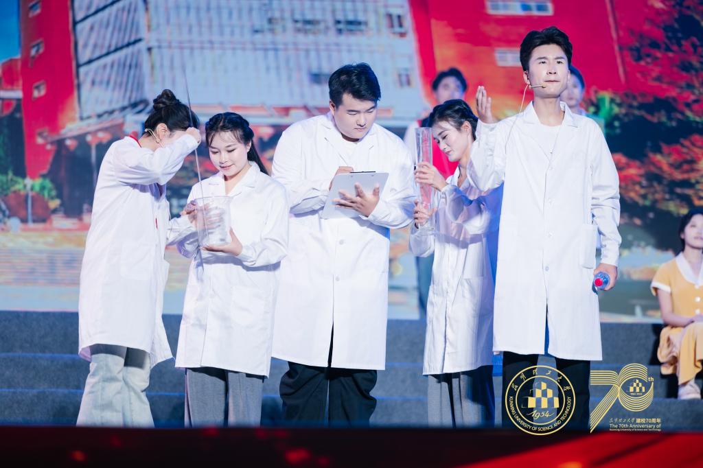 回顾来时路,七十载风雨兼程,我们以奋斗作笔,书写了不朽华章。第二篇章“流金岁月绽芳华”用一幕幕生动的舞台场景,生动描绘了昆工人与民族共命运,与时代同步伐的那段流金岁月,这些故事不仅是岁月的痕迹,更是昆工人与时代同行的诗篇。
