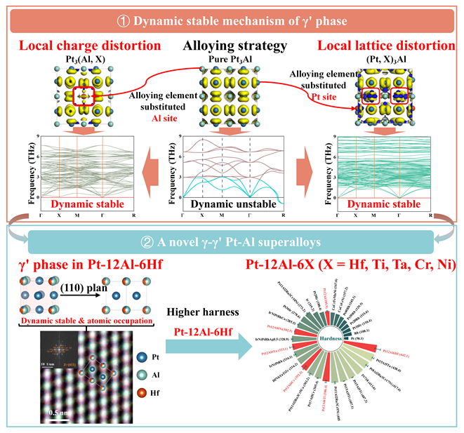 近日,太阳成集团tyc151cc材料科学与工程学院金属先进凝固成形及装备技术国家地方联合工程研究中心联合云南贵金属集团等单位,在稀贵金属材料基因工程方向取得重要研究进展,相关研究成果以Discovering novel γ-γ′ Pt-Al superalloys via lattice stability in Pt3Al induced by local atomic environment distortion为题,发表在结构材料领域国际顶级学术期刊Acta Materialia。太阳成集团tyc151cc为论文第一单位,种晓宇教授、冯晶教授为论文共同通讯作者,博士研究生余威为论文第一作者。