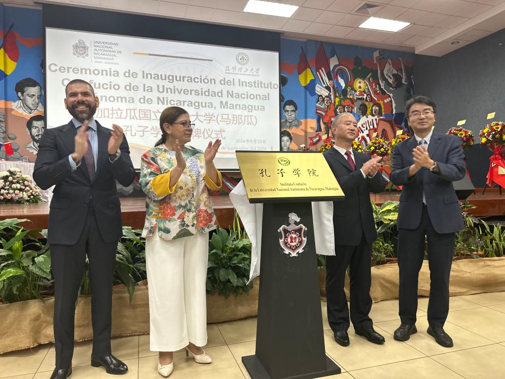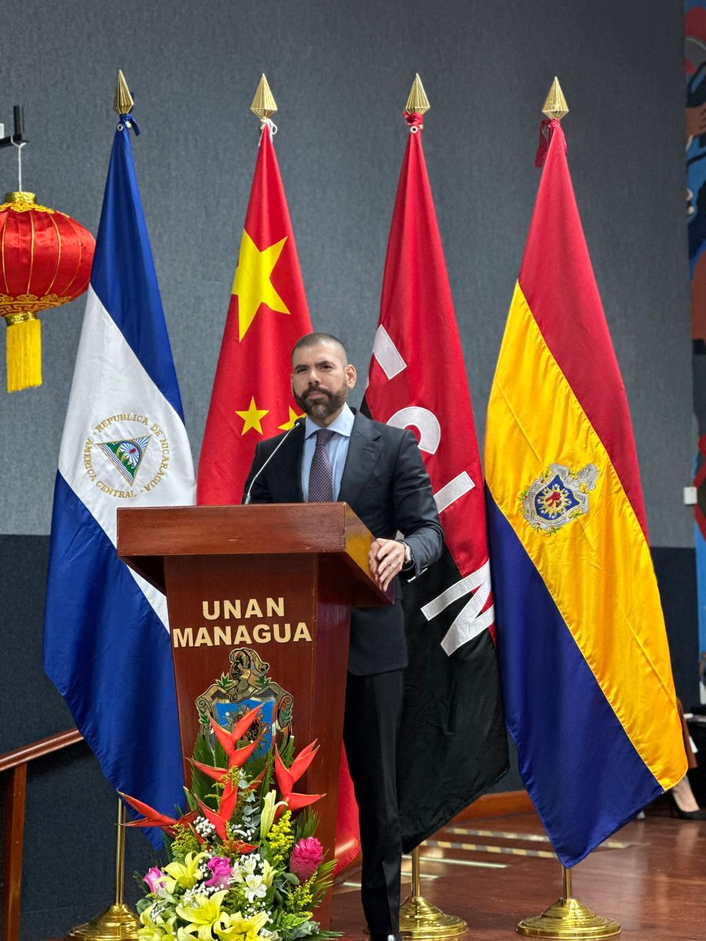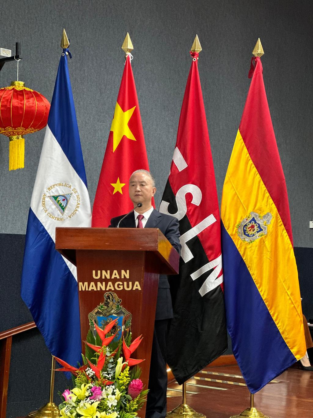 中国教育部中外语言交流合作中心主任郁云峰在贺信中提到,2024年是孔子学院品牌创立20周年,尼加拉瓜国立自治(马那瓜)大学孔子学院在这一特殊的节点揭牌运营,极具里程碑意义,既展示了中尼两国教育文化交流合作的蓬勃生机,也预示着中尼人文交流欣欣向荣的光明未来。