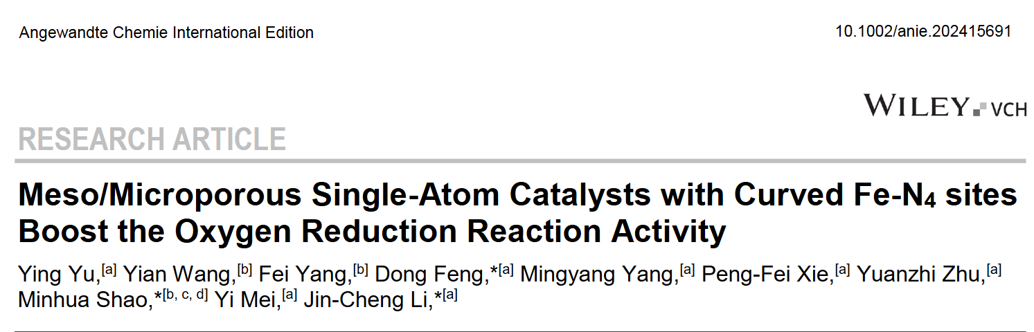 近日,太阳成集团tyc151cc化学工程学院冯东博士、李金成副教授、梅毅教授与香港科技大学邵敏华教授合作,在高性能非贵金属燃料电池催化剂研究方面取得重要进展,相关研究成果以“Meso/Microporous Single-Atom Catalysts with Curved Fe-N4 sites Boost the Oxygen Reduction Reaction Activity”为题发表在化学顶级期刊Angewandte Chemie International Edition上。