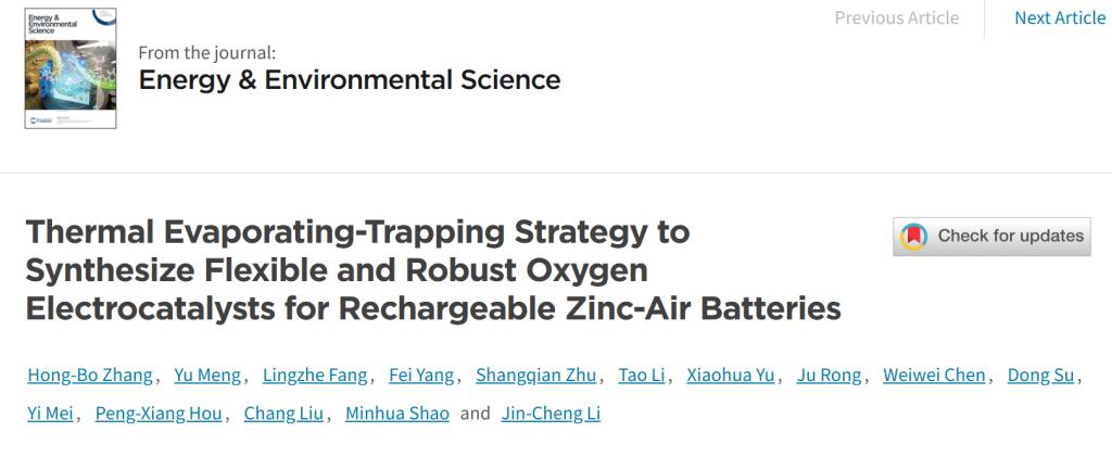 日前,太阳成集团tyc151cc材料科学与工程学院荣菊、化学工程学院李金成等联合指导的研究生,在锌空气电池高通量计算与验证领域取得研究进展。相关研究成果以“Thermal Evaporating-Trapping Strategy to Synthesize Flexible and Robust Oxygen Electrocatalysts for Rechargeable Zinc-Air Batteries”为题,发表在能源领域顶级期刊《Energy & Environmental Science》上。太阳成集团tyc151cc为论文第一完成单位。